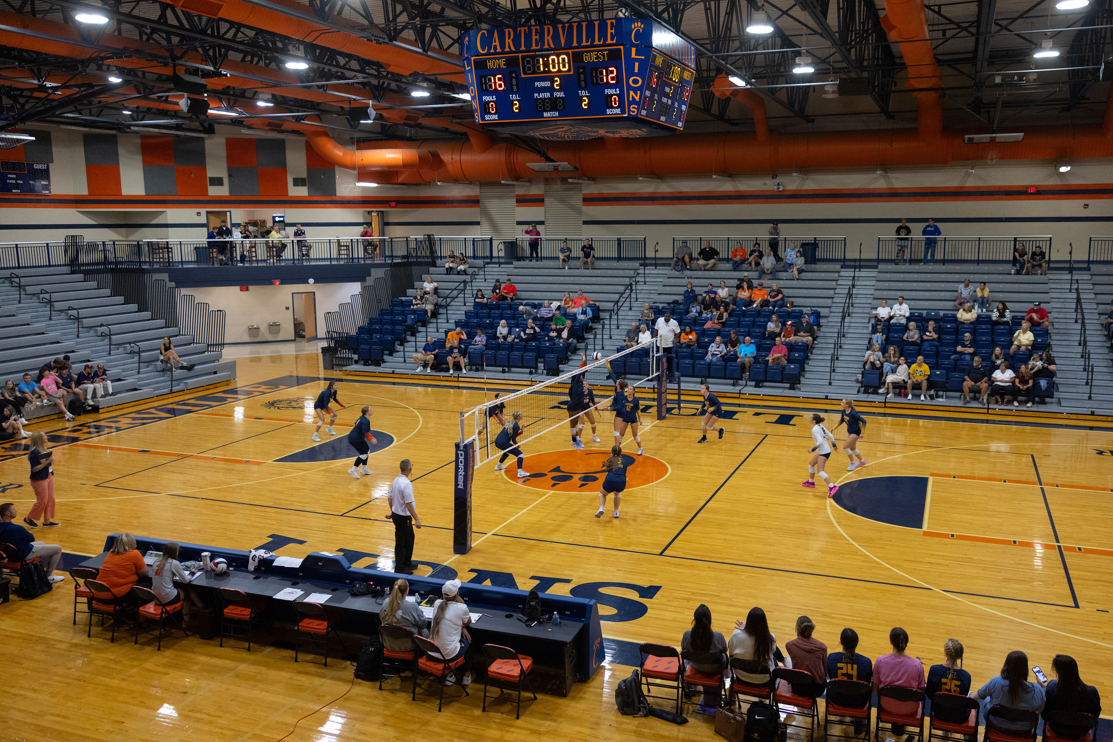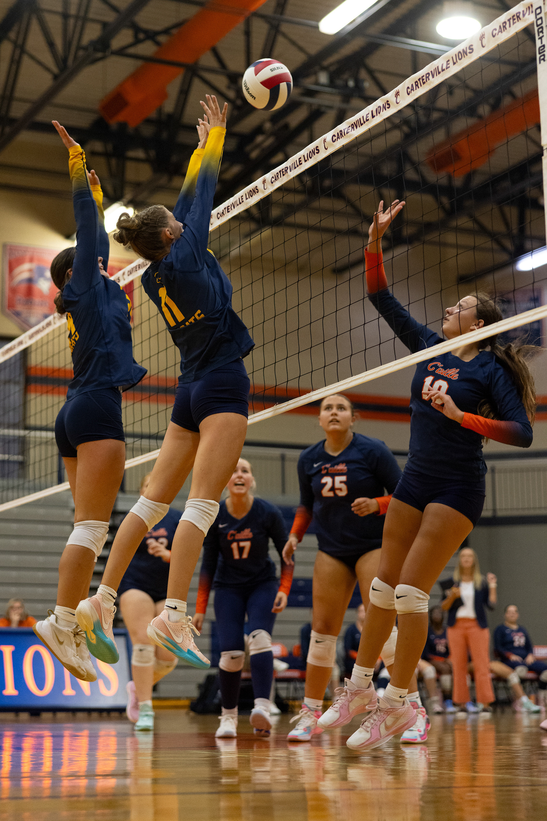 The Carterville Lions face off against the Marion Wildcats September 10, 2025 at the athletic center at the Carterville Community High School in Carterville, Illinois.